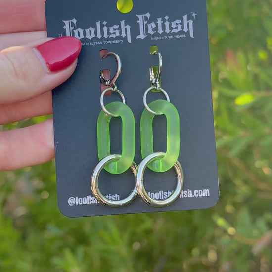 Frosted Chain Single Link O Ring Earrings-Multiple Colors