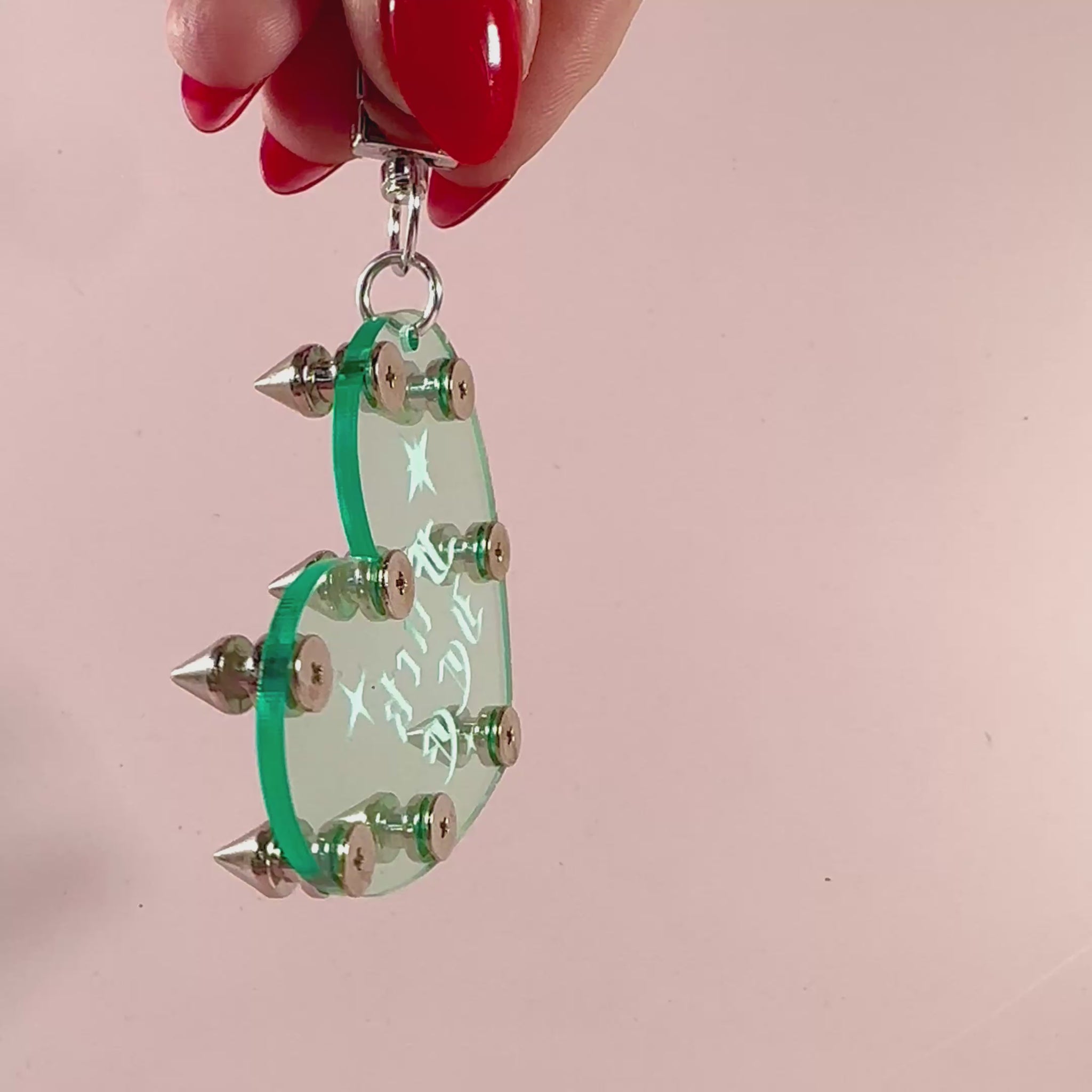 Real cone studs screwed in to the acrylic charm